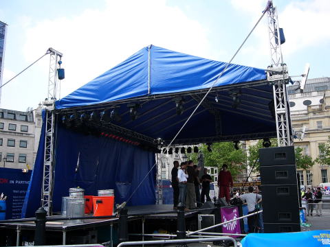 同じくトラファルガーにて。 何やらイベントの準備中。 “STOMP”がリハしてました! In Trafalger. "STOMP"(the percussion pereformance team) was rehearsing for an event. |