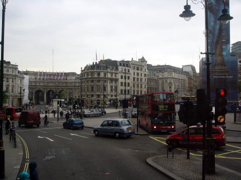![]() バスの2階より撮影。 トラファルガー・スクエアが右前方に見えます。 I took this photo from second floor of the bus. You can see Trafalgar Square in the right ahead . |