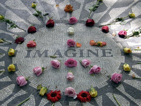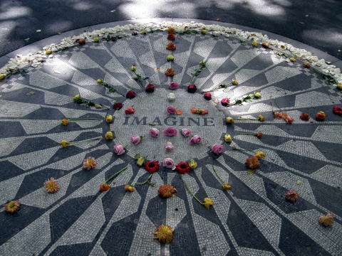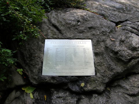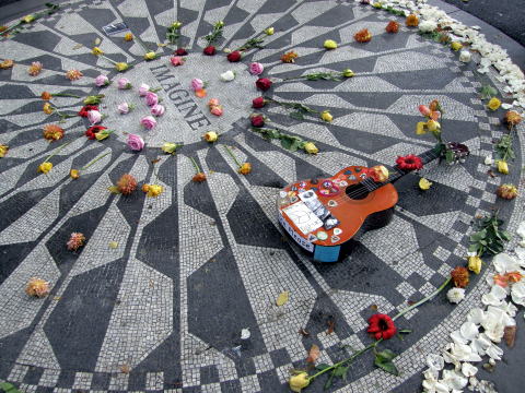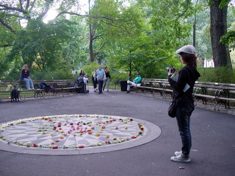 | ジョン・レノンの曲”IMAGINE”にちなんだモニュメント。 今でも亡き彼を慕い、 訪れる人たちが跡を絶ちません。 |