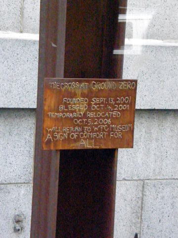 | WTC倒壊後、残された鉄柱で組んだ十字架。 |